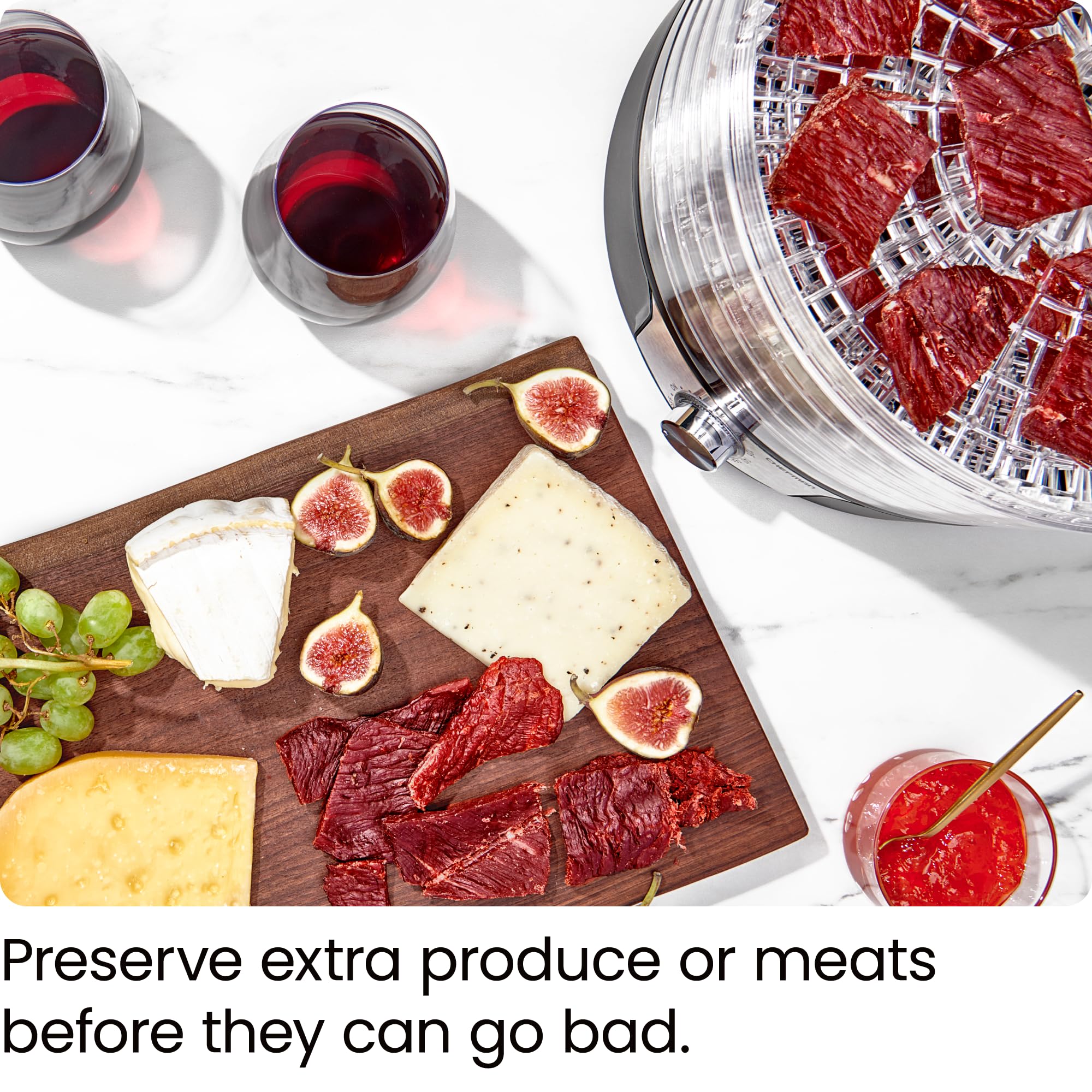 - DEHYDRATE YOUR FAVORITE INGREDIENTS: Dehydrate fruits, vegetables, meats, and herbs for healthy and unique dishes. Create snacks or savory sides for your next family dinner or soirée.