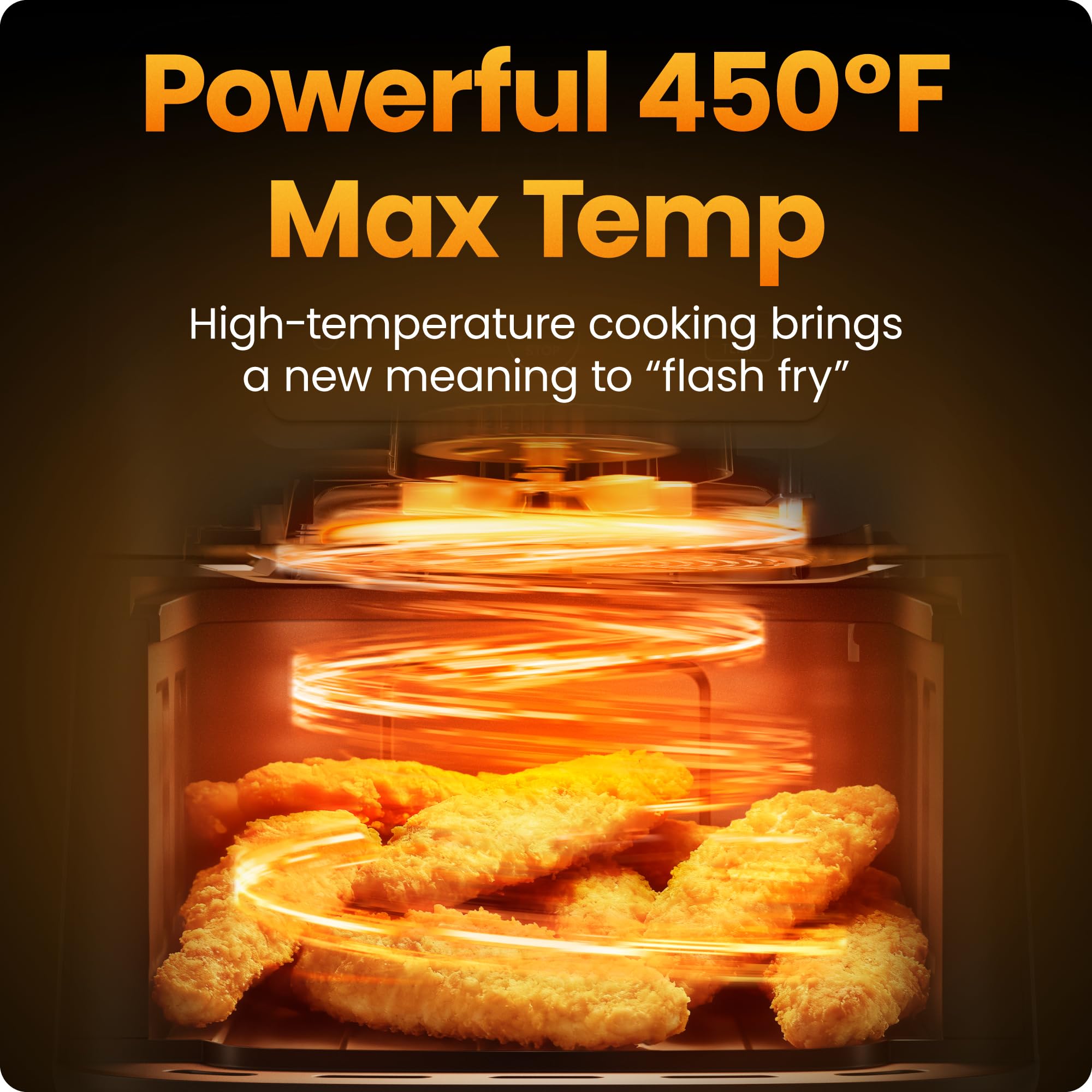 - CRISP YOU CAN COUNT ON: Enjoy delicious and extra-crispy meals in a fraction of the time; with a powerful 450°F max temperature, this compact air fryer cooks quicker than a traditional oven and lower-powered air fryers.
